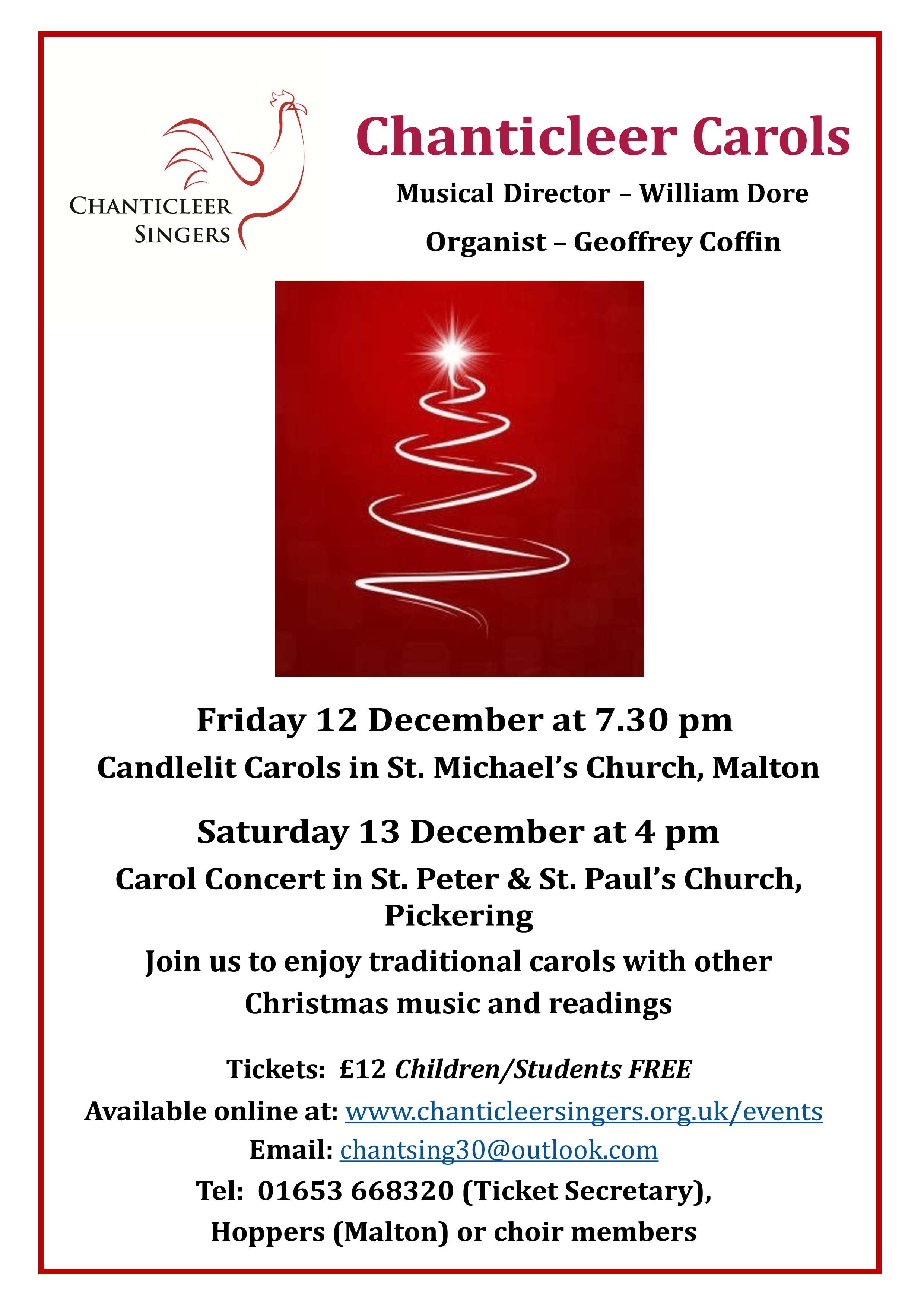 This section gives details of local choral events over the coming months. If you know about a choral event in Yorkshire that you would like us to include, please contact the Secretary.